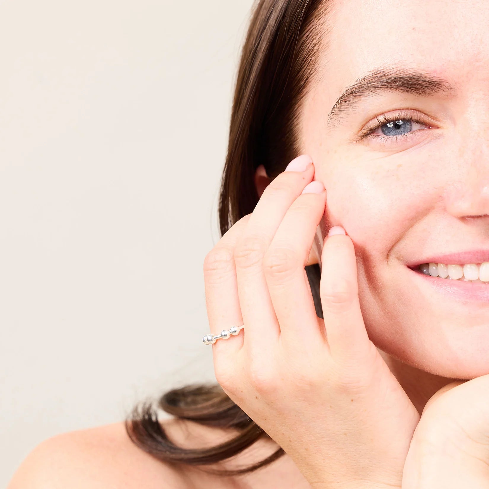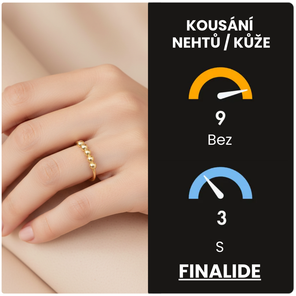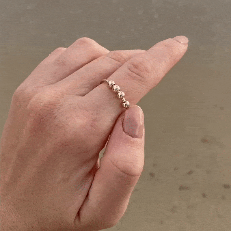 Prsten CALMY využívá smyslovou kotvu k jemnému uklidnění vaší úzkosti. Při každém nárůstu stresu nebo nutkavých gestech (kousání nehtů, škrábání kůže…), jednoduše protočte jeho pohyblivé korálky mezi prsty.
